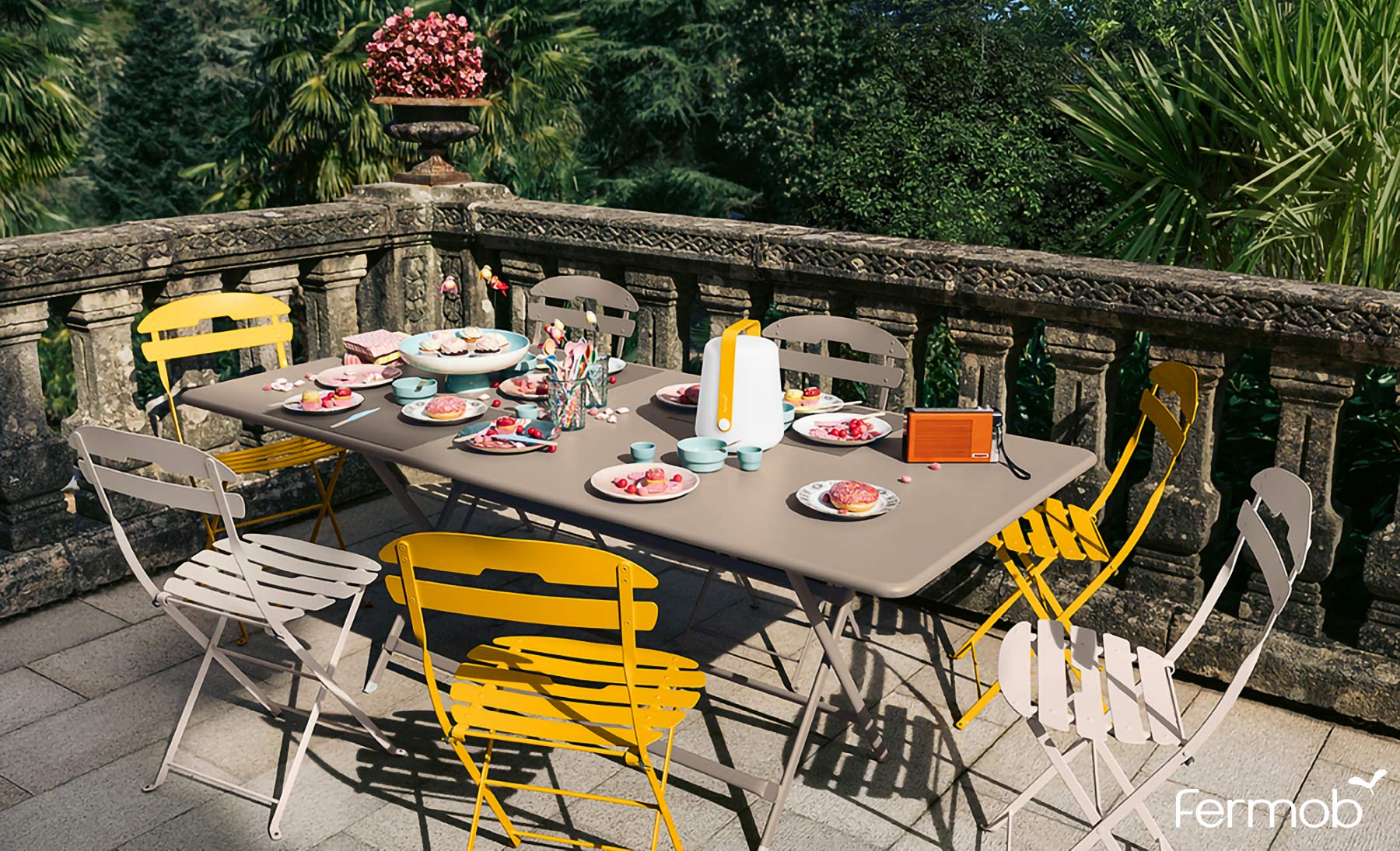 A modern, mobile chair with a handle that can be used to fold and unfold the chair with the utmost simplicity. Its wider slats make it even more comfortable. The result is a cheeky nod to its illustrious elder sister, the Bistro chair