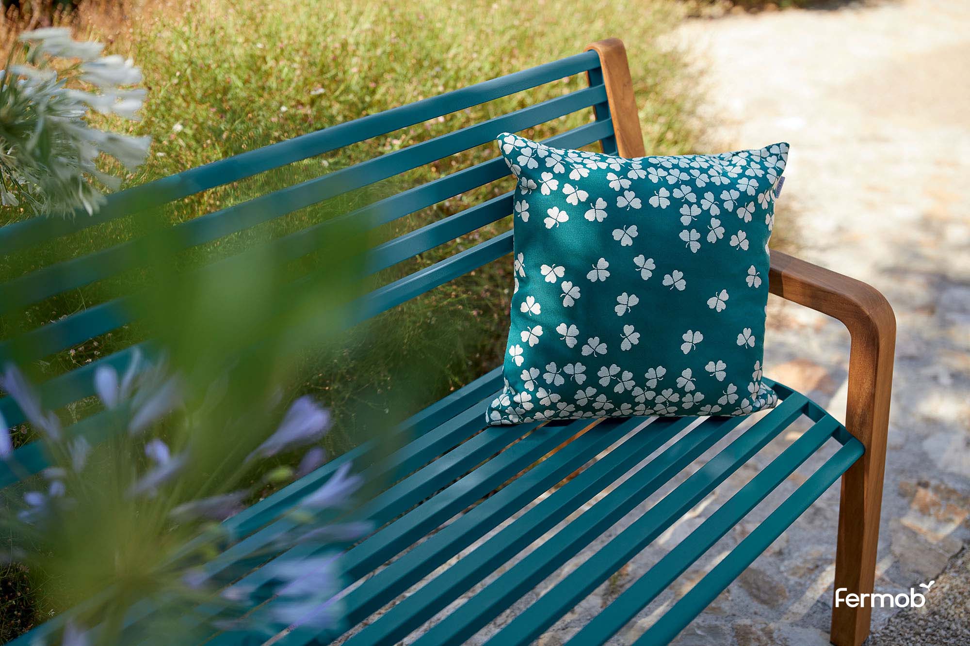 With its aluminum seat and backrest and teak feet, Somerset encapsulates Fermob’s attachment to combining materials. The colorful metal – the brand’s trademark material – looks great alongside the warm wood, and both are resistant to outdoor conditions. Somerset is a fresh take on the English park bench – both authentic to the original inspiration and bold in its execution, with velvety-soft teak armrests integrated into the base to create a natural, flowing look. Teak is naturally decay-proof, offering unrivaled resistance to outdoor conditions. What’s more, Fermob sources its teak from government-controlled plantations in Indonesia covered by a certified reforestation program.