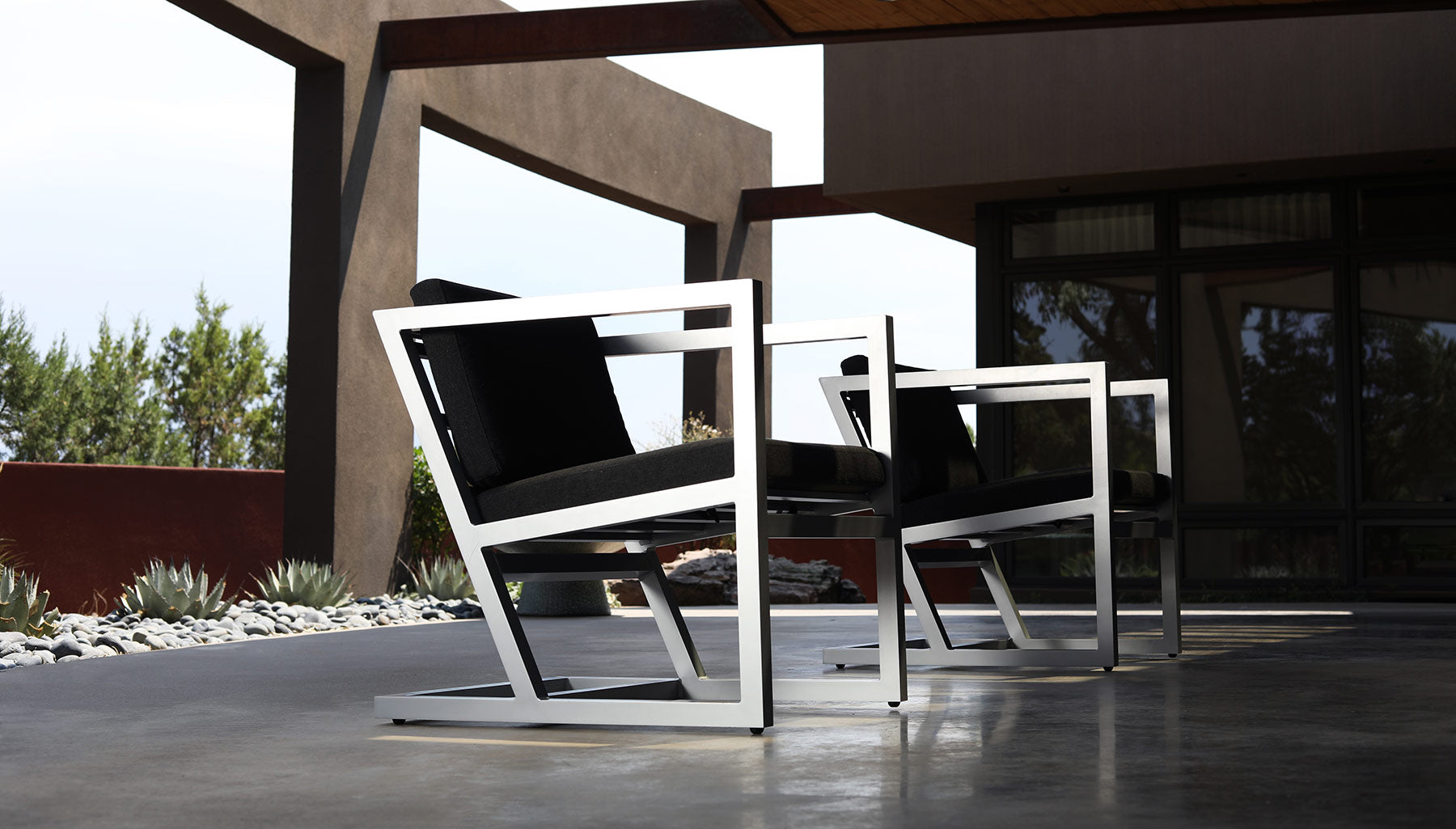The Lola chair is a collaboration between Hans Harland-Hue of Conception Haus and Jean Philippe at Bon Marché. It is sustainably fabricated in aluminum, powder coated and custom upholstered with Sunbrella fabric, 100% locally in New Mexico. The modern lines and angles make this chair a true mood setter in any environment - inside and out. We designed it in all-weather aluminum so the sleek modern vibe could set the mood on modern patios and complement our other metal furniture collections. This is an edgy look that is incredibly comfortable - perfect for cocktails or a reading nook.