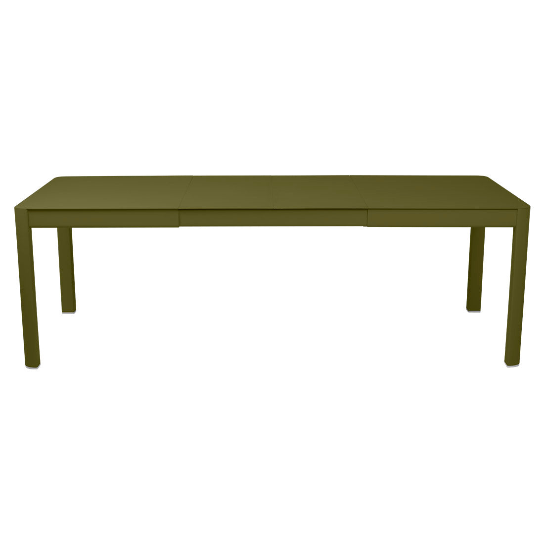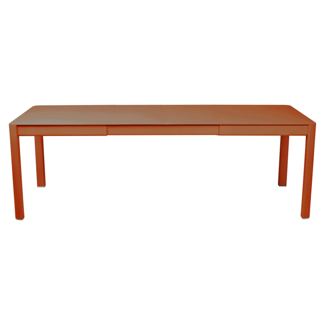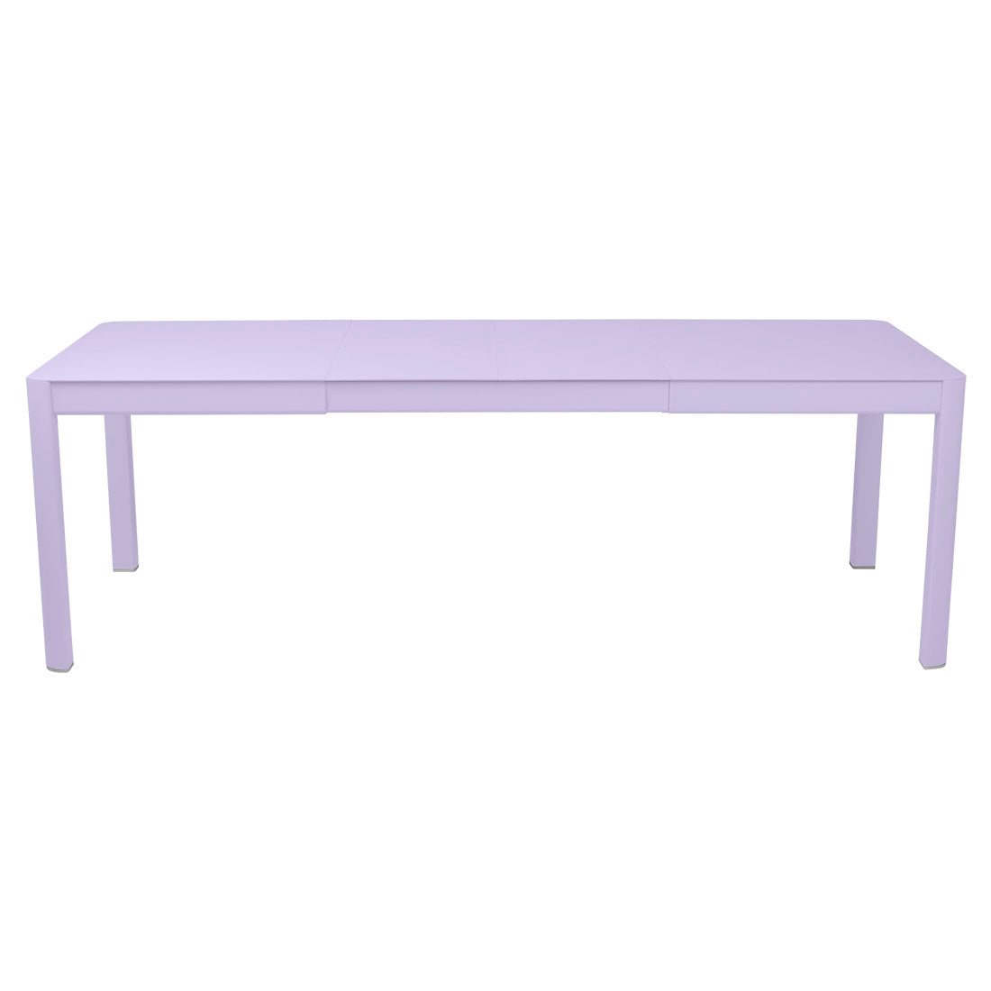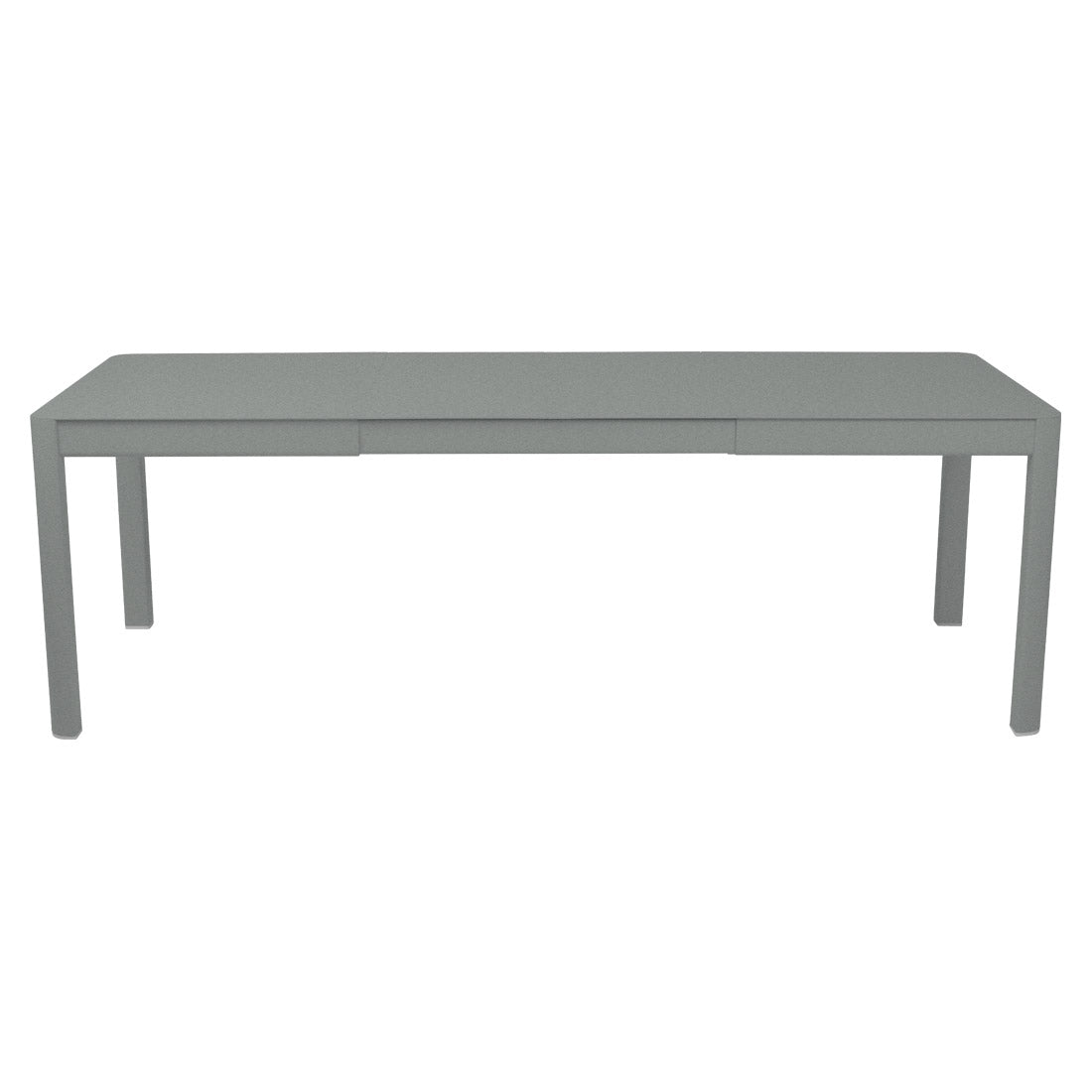Ribambelle Dining Table with 2 Extensions is the most modular metal table on the market seating 6, 8, or 10 people. It can go from being 53in long to 92in long with its two 19in extensions that are very easy to use. Its crosspieces with slide and bearing construction make it rock solid, whatever the configuration. This 100% aluminium garden table is very stable and stands up well to outdoor conditions. Housed in a storage compartment hidden under the table, its extensions are discreet, so it always looks great any way you use it.