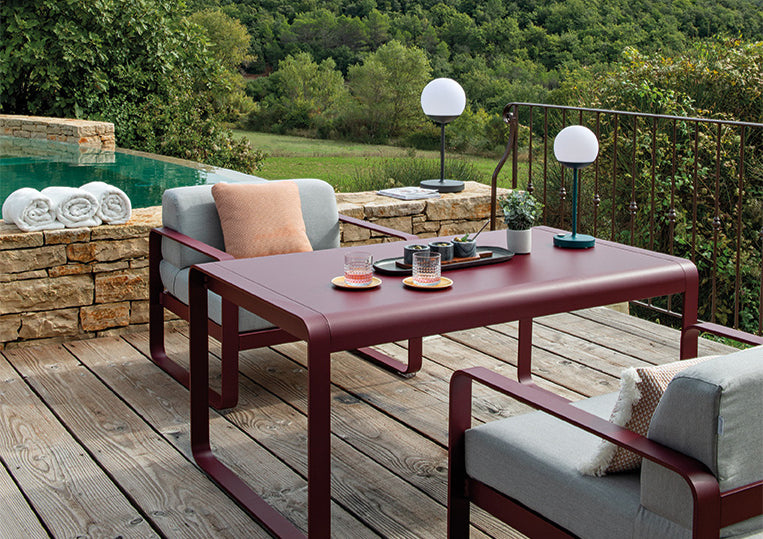 This modern metal dining table is the ideal complement to the Bellevie garden furniture set. Made from aluminium, it is ideal for outdoor or indoor use and is easy to move—sturdy and light in equal measure. This contemporary, welcoming dining table, with its generous dimensions and gentle curves, is available in all the colors of the Fermob color chart – perfect for creating a customized space to relax.