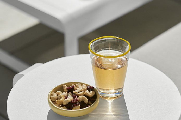 Its eye-catching rounded form really enhances the look and style of any Bellevie Lounge product. It fixes easily to the armrests of armchairs and sofas, with no need for tools – all it takes it a turn of the attachment knob. And left-handed people need not worry, because this shelf attaches on either side of the seat!