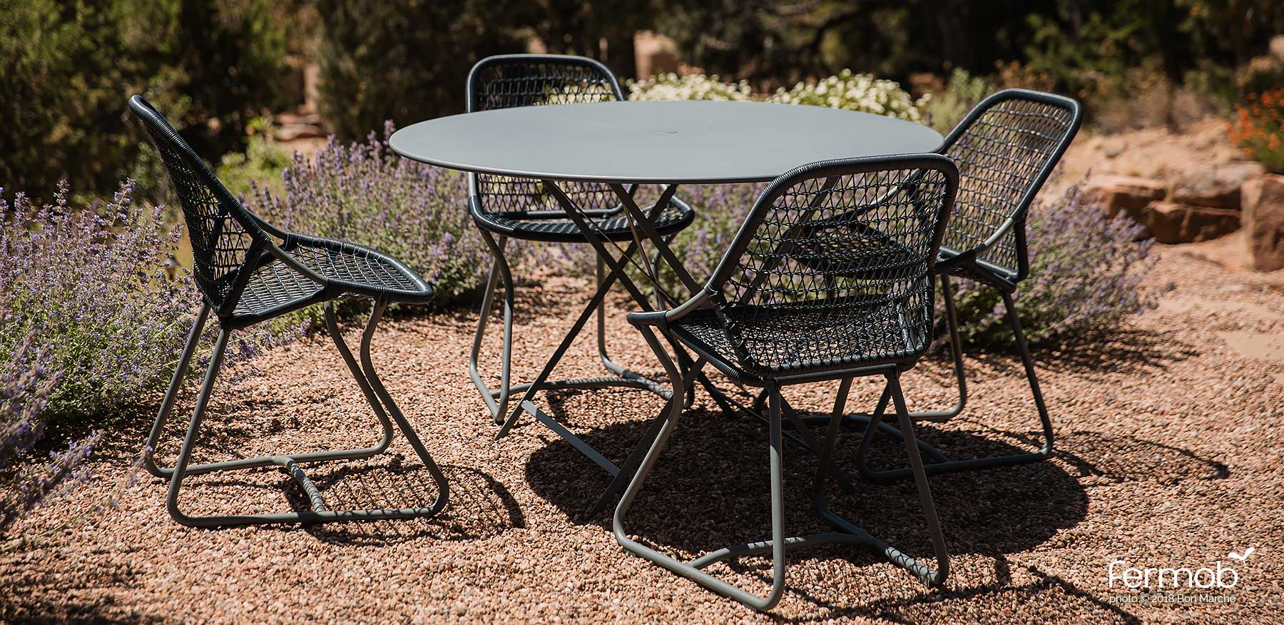 Fermob developed the Bistro range from the original model described in the "Simplex" patent registered in 1889 – and of which the brand is now the trustee – and produced an ingenious, simple collection that is bursting with joy and which has lost none of its charm and authenticity.