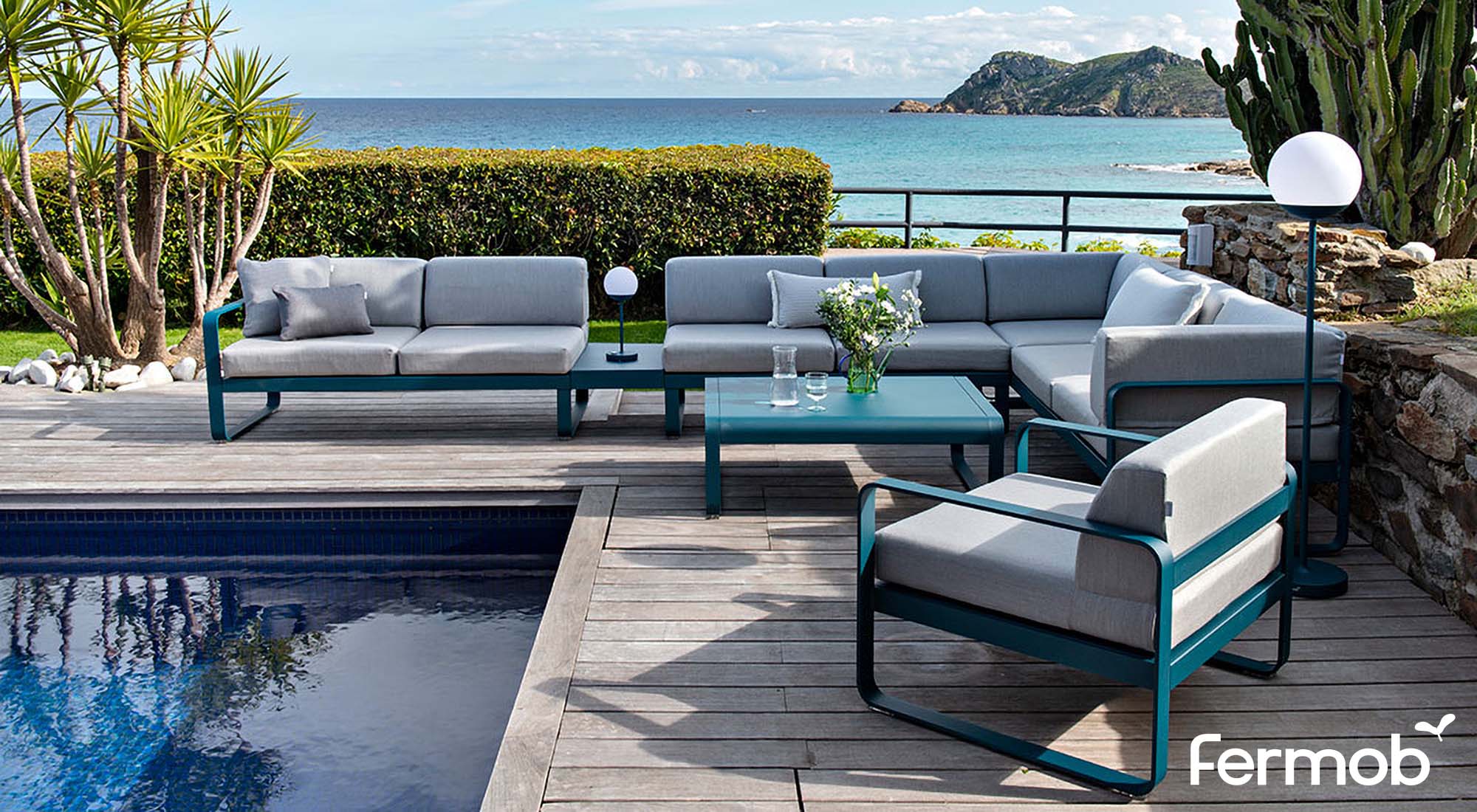 PREMIUM CUSHIONS: Solution-dyed acrylic thread (pigments blended in the heart of the fiber for enhanced durability). Highly UV-resistant, water-repellent, stain-resistant and mold-resistant. An exclusive Fermob fabric that is breathable, comfortable and pleasant to the touch. Removable cushions, machine wash.
