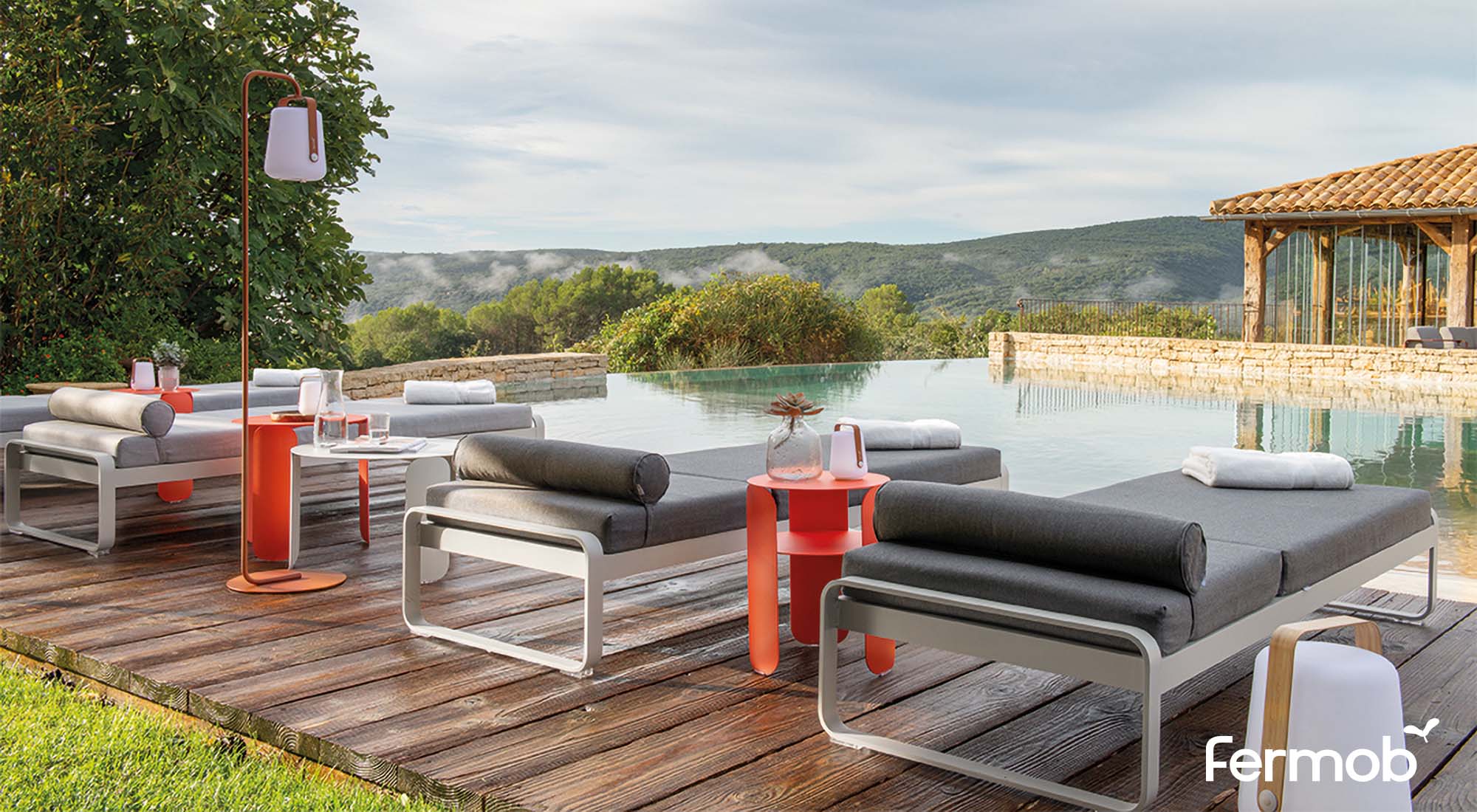 Fermob Bellevie Premium Sunlounger with graphite cushions and attachable headrest