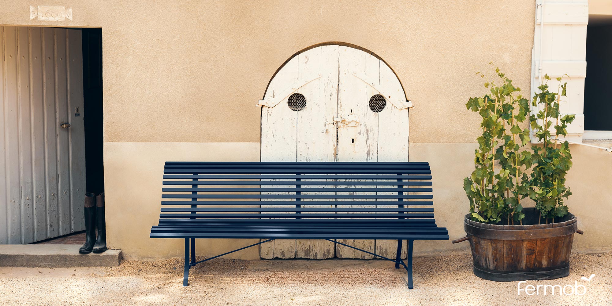 The quality steel construction and timeless shape define the Louisiane 79" Bench from Fermob. Finely crafted using sturdy steel slats, the design of this bench is reminiscent of classic wooden park benches and perfect in any outdoor setting.