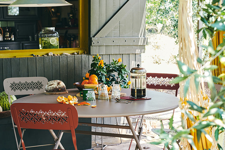 The Caractère Round Dining Table features a smart table top, a sociable format and a base designed to provide maximum leg room. It is easy to fold, transport and store. These generous traits make Caractère a very easy table to live with! What’s more, it is the lightest table of its dimensions on the market! Its table top comes with Very High Protection Treatment, making its extremely sturdy. Caractère epitomizes Fermob’s technical prowess – robust, stable and elegant.