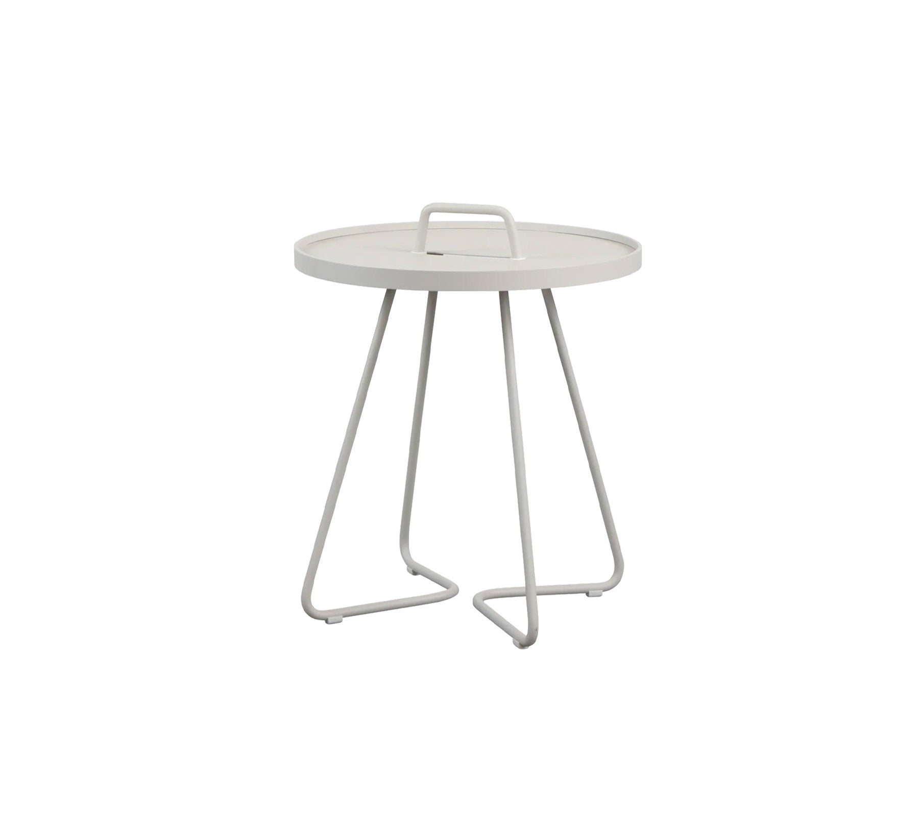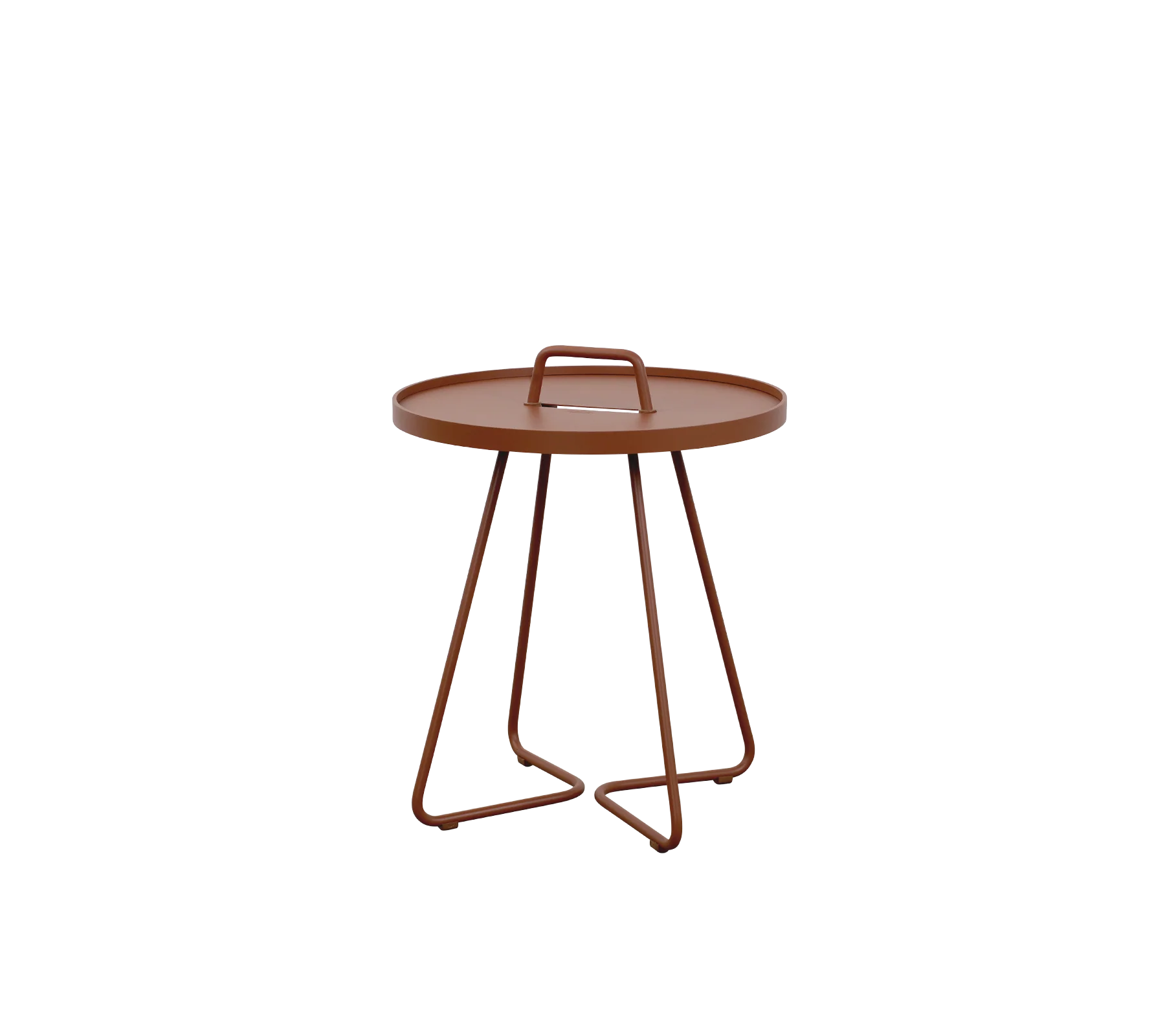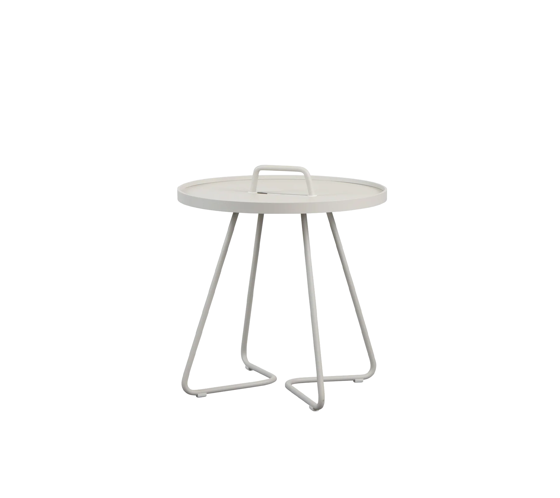 Cane-line and the Danish design team Strand+Hvass decided to make a smaller version of the side table that could both be used together with the larger version and of course as a stand alone side table. The idea behind the design was to create a multifunctional side table with a loose tray. The Danish designers created a unique solution where the table top can easily be lifted off and used to carry drinks from the kitchen to the terrace. An easy to grap handle secures that the One-the-move table can be moved indoors after use. It is made in 100% aluminium thus it is designed to all-year usage outdoor. However, to minimize cleaning and keep the overall look of the product for many years, we recommend to store it indoors during the winter time.