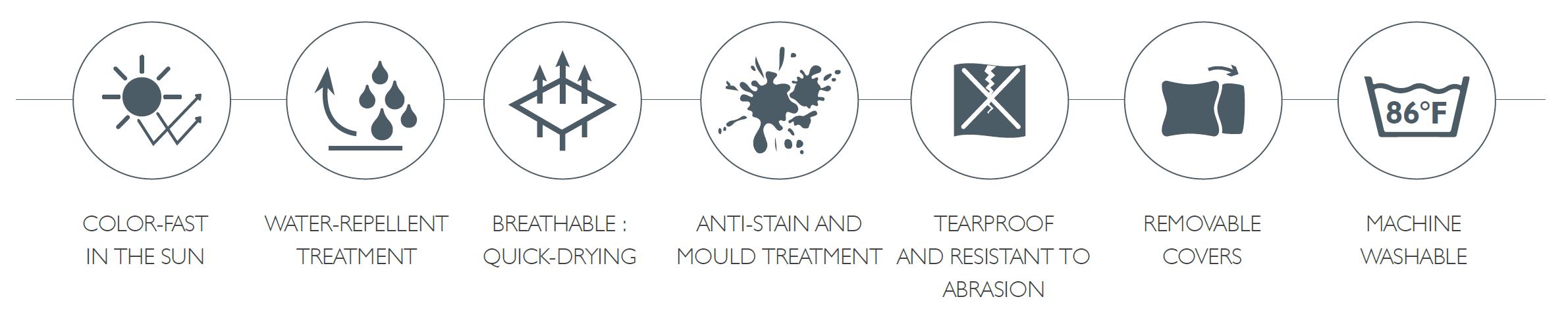 View all the individual modules available in the collection as well as additional lounge and dining pieces available in the Fermob Bellevie collection to make your custom outdoor living space complete.