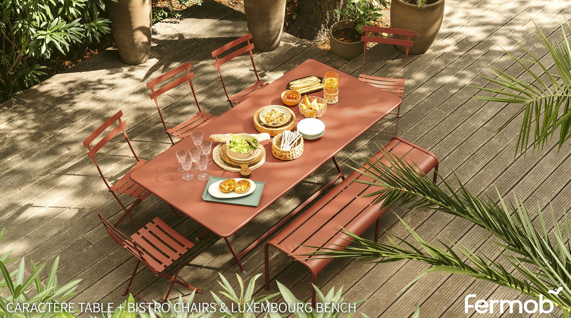 The only large folding rectangular table on the market, Caractère can be unfolded and folded away again at lightning speed. With its tabletop measuring 75 inches in length, it can accommodate up to 8/10 people, while its central base is specially designed to provide plenty of legroom for everyone. At just 66 lbs, it is the lightest steel garden table of its size anywhere in the world. Its table top comes with Very High Protection Treatment, making its extremely sturdy. Caractère epitomizes Fermob’s technical prowess – robust, stable and elegant.